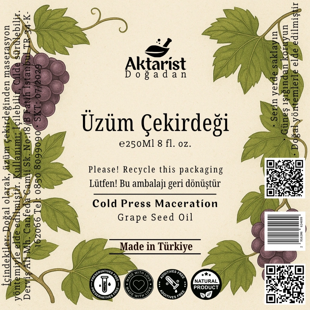 Aktarist Üzüm Çekirdeği Yağı 250Ml